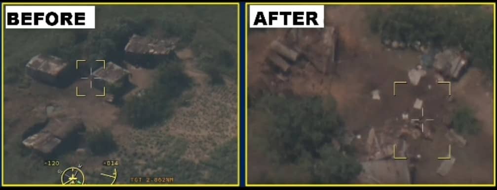 Consequently, precision airstrikes were authorized on the selected target areas, engaging and destroying most of the structures. A thick black smoke from one of the destroyed structures signified a storage area, probably designated as an armoury or a logistics storage area. Several terrorists were also neutralized in the process.