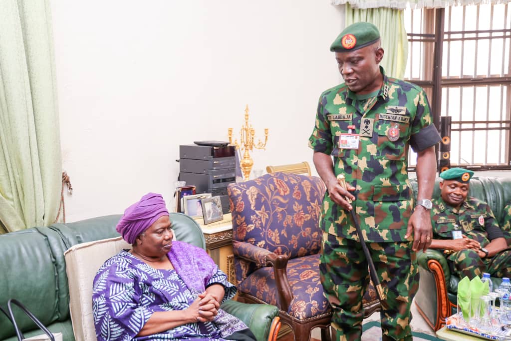 Brigadier General Onyema Nwachukwu, Director Army Public Relations in a statement disclosed that Gen Lagbaja, who was accompanied by some top brass of the Nigerian Army, paid the visit today Wednesday 22 November 2023, to commiserate with the widow of the deceased Army Chief who was also one time National President, Nigerian Army Officers’ Wives Association (NAOWA), as well as other members of the family.