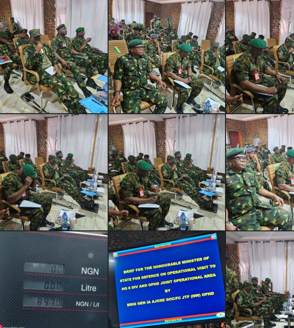Receiving briefing from the GOC 8 Division/Force Commander Joint Task Force North West Operation Hadarin Daji