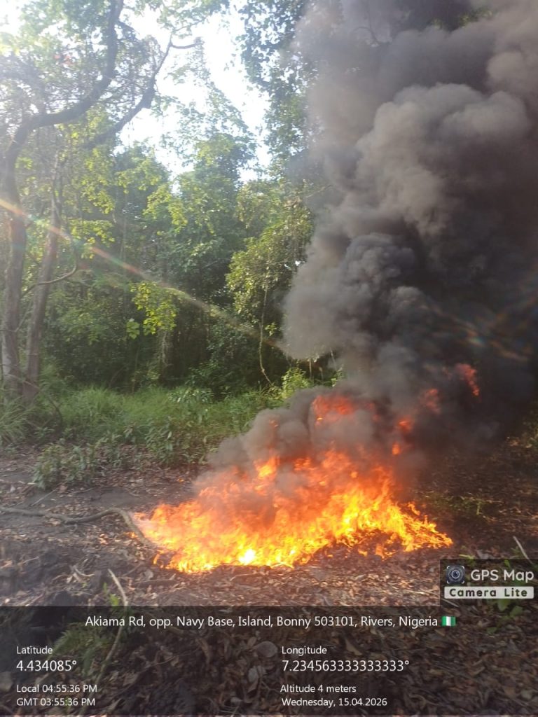 “In a related operation, Forward Operating Base (FOB) Bonny, supported by Nigerian Navy air assets, uncovered and deactivated multiple illegal crude oil storage sites within the Allison Community in Bonny Local Government Area.