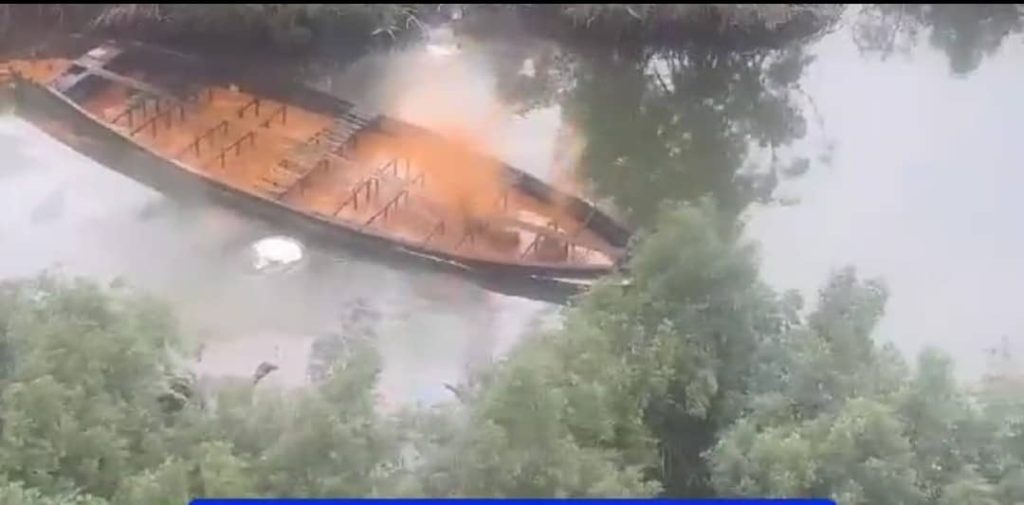 “At Bille, a barge filled with illegal refined products was observed meandering through the creeks and subsequently struck.